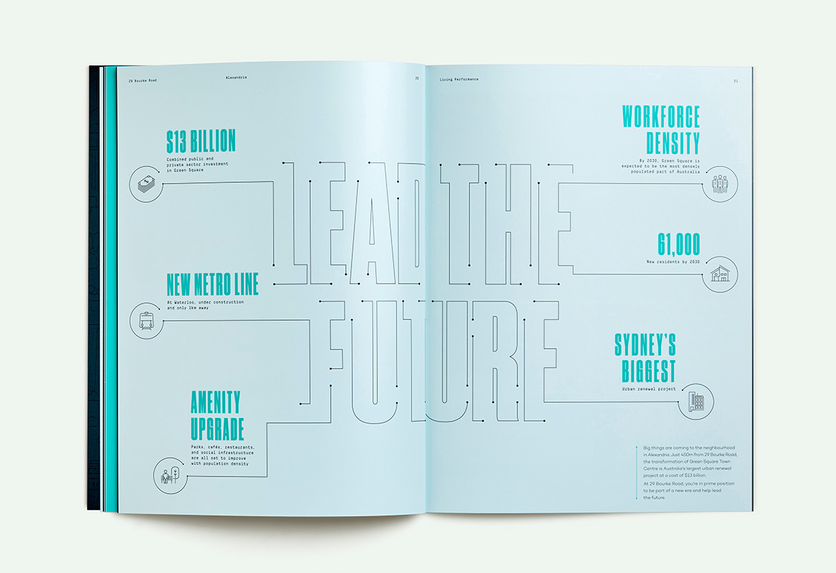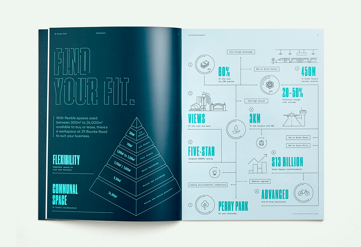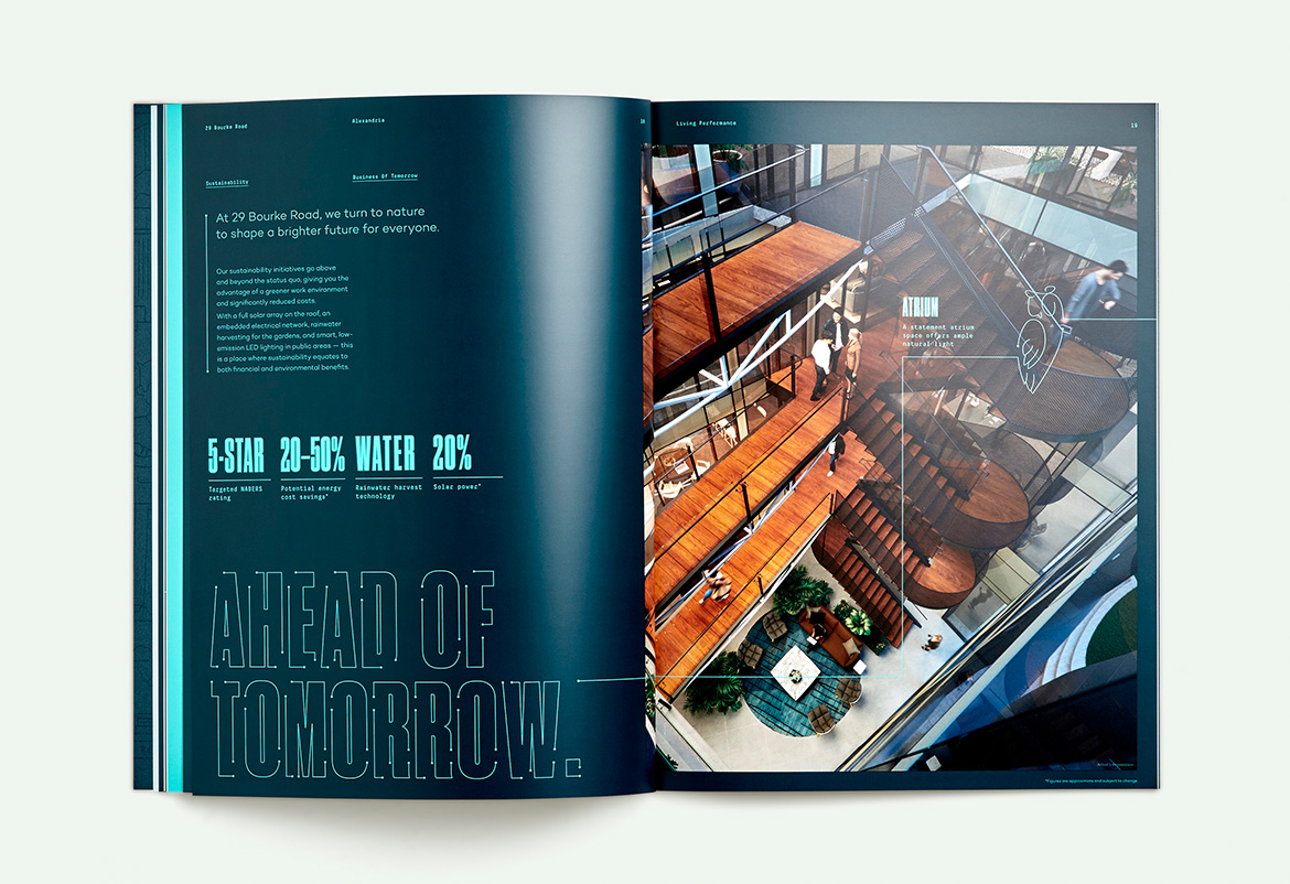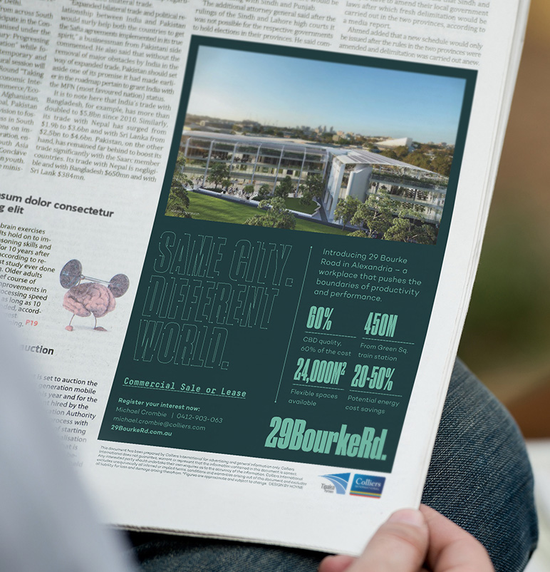 The brand positions the project at the forefront of growth in the area, enabling Alexandria’s bright future to be attainable today. With a focus on the work lifestyle that 29 Bourke Road delivers, communications educate potential occupants about the benefits of the location; this is an intelligent, dynamic and commercially smart alternative to the already overcrowded CBD.