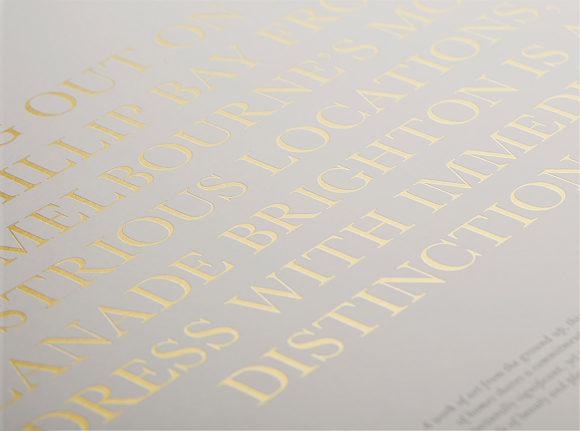 Bespoke, crafted and expert – these are the words that describe 30 Esplanade and this was the philosophy underpinning the campaign. A spectacularly packaged set of marketing tools celebrates every single artist and craftsperson involved in the project.