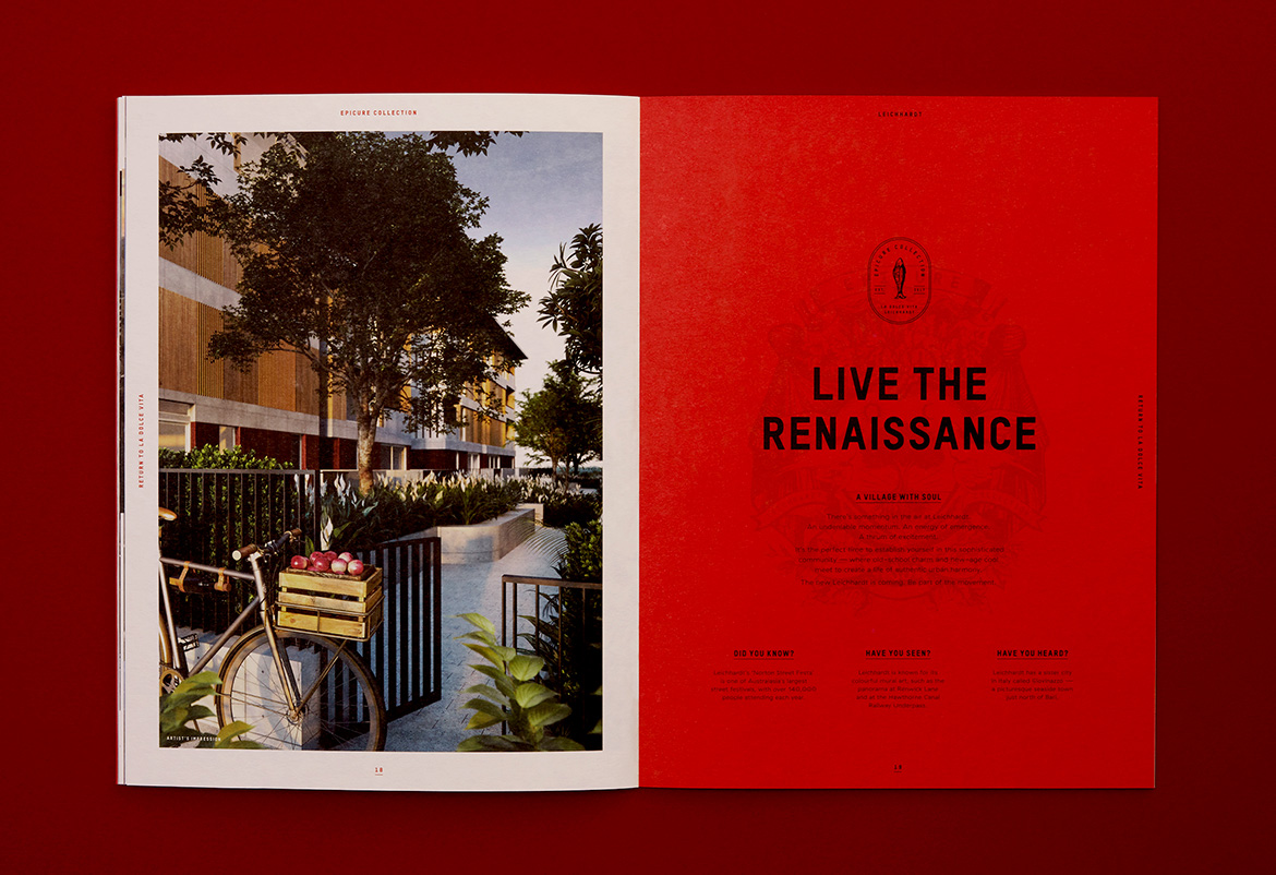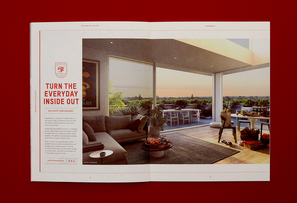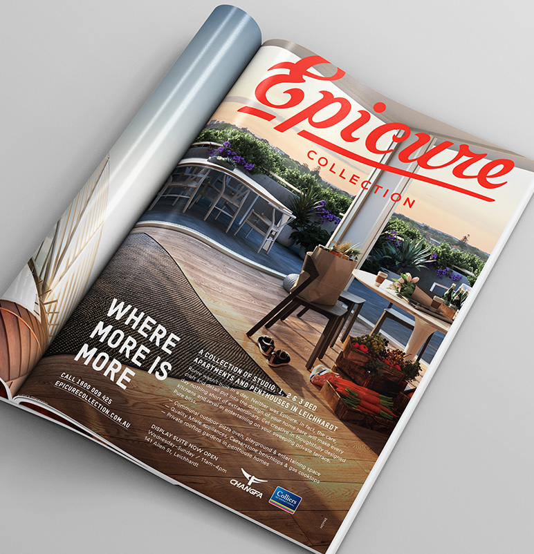 Epicure is a new development by Changfa of 139 apartments in the inner-west Sydney suburb of Leichhardt. The development will bring a new level of quality to the market, transforming and elevating the image of apartment living in the area. Hoyne were briefed to create a campaign that communicated this to the target market of local owner occupiers.