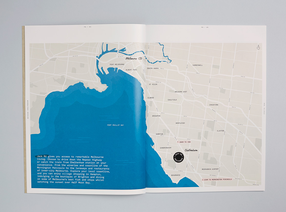 This brand required the artful mix of familiar bayside spirit and thoroughly modern living. To capture this perfectly required an immersion in the area – an understanding of traditional neighbourhood palettes and character alongside contemporary tastes of the target audience. We developed a brand identity that was clean and light with beautiful, large hero images and dominant call-out statements mix with collections of small snapshots and detailed captions to accurately and inspiringly depict urbane beachside living.