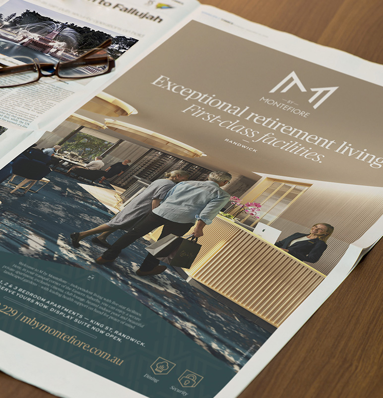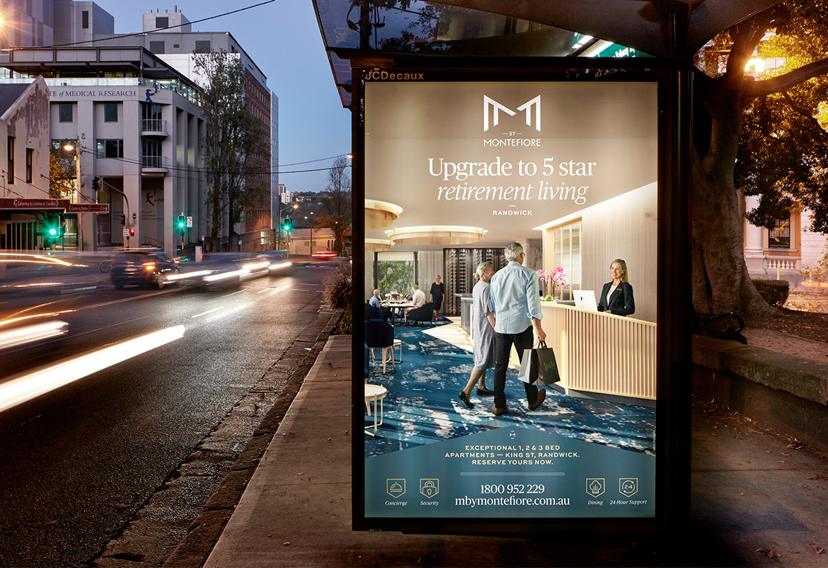 A new sub-brand has been created to reflect this new product offering. M by Montefiore, is a signature luxury and amenity rich product evoking a step up in lifestyle rather than a compromise in either location or independence. Leveraging Montefiore’s well-respected heritage, communications place emphasis on the integrity of the organisation to negate negative market sentiment.