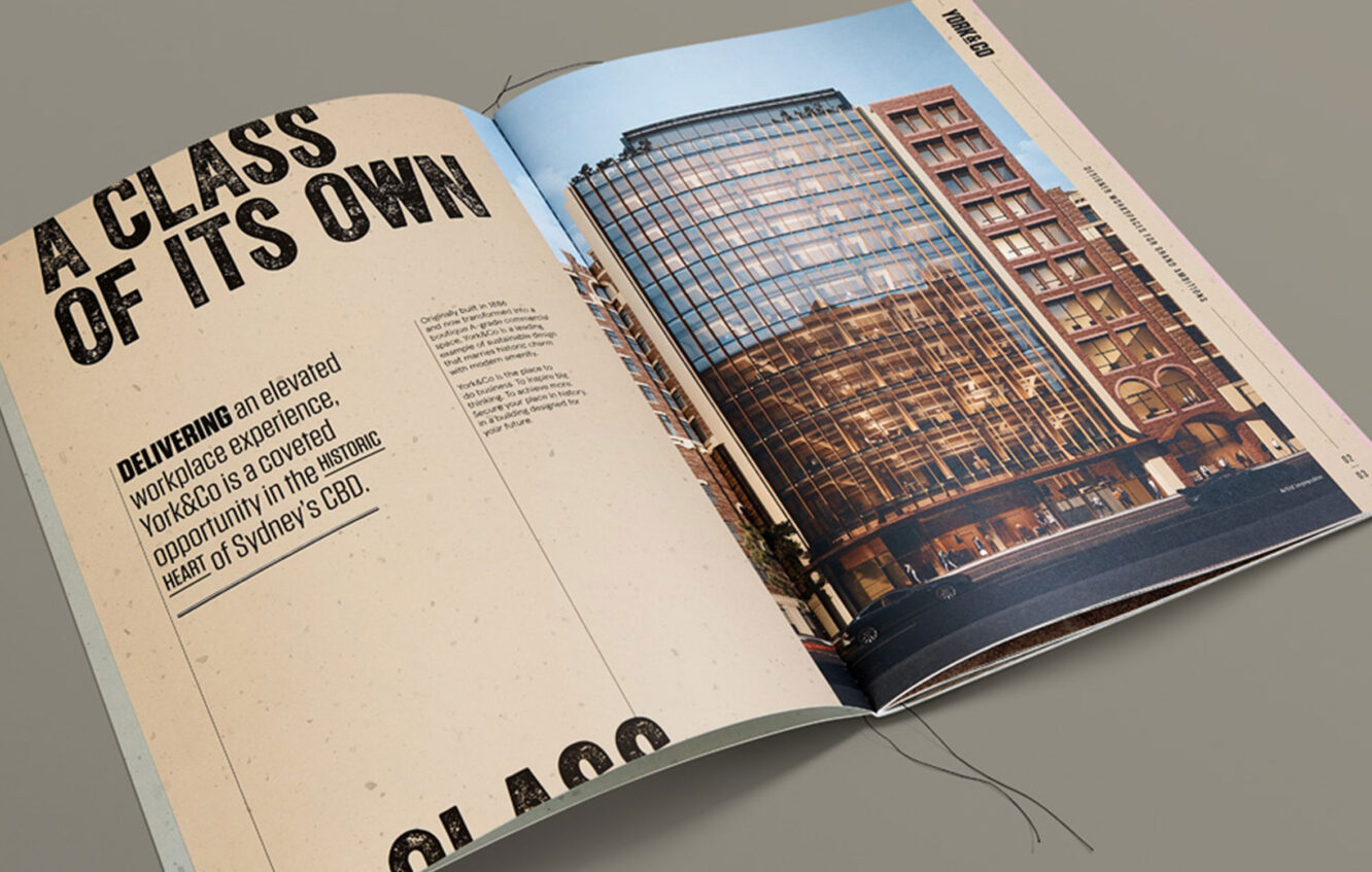 Refurbished using original materials, York & Co adds new polished and characterful A-Grade office space to Sydney’s midtown. A transformation of two neglected commercial buildings, Hoyne introduced a new name, created a brand and designed a marketing campaign for the market launch. Combining gleaming, high-tech amenity with stately 1886 bones, heritage charm was the key differentiator for this project, leading to the “Timeless offices for true originals” positioning. The brand identity, paying homage to city sign writing from the original era, was paired with stripped back graphic language and illustrative embellishments, and clean, strong photography and CGIs further distinguished the campaign.